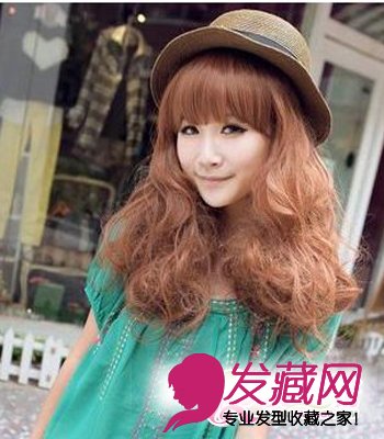 韩式 这是一款韩式女生烟花烫发型,耳际开始用烟花烫发型来打造出蓬松的造型,栗色的发色散发出时尚又浪漫的梦幻气息。齐刘海带出小女生的甜美可爱,和紧贴脸颊的发丝打造出小脸效果。搭配带着异国情调的帽子,尽显韩流范儿。