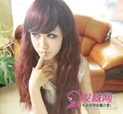 侧分的棕红色玉米烫发型超吸睛,侧分的刘海混元可爱,长长的玉米烫发尾渲染时尚氛围。