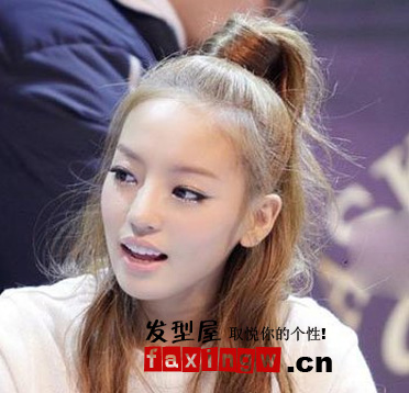 无刘海+半花苞头 这款花苞头的扎法,同样是采用无刘海设计,把女生精美的五官和惊艳的脸孔一展无遗,给人感觉充满了青春活力,呈现精神饱满的面貌。这款发型对脸型要求较高,适合自信满满的女生。采用半扎半放的形式,既有小女生的随性和调皮,又有小女人的优雅和妩媚气质。