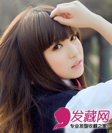 日系风格齐刘海长直发发型 显瘦