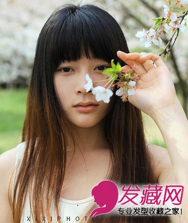 两侧飘逸的长发修饰了女生的脸型,简单发型,森女气质显现出来。齐刘海的发型设计,给发型带来了活力的气息。