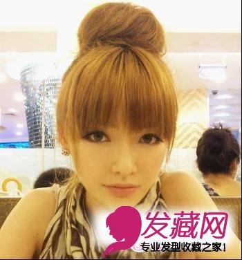 丸子的扎法想必MM们都知道啦,想更生动迷人齐刘海当然是MM的大爱了.大大的眼睛在细碎的齐刘海下显得电力十足.高高的丸子扎于头顶,更具造型感,很日系的发色是不是很青春可爱.漂亮的丸子头又是一款很出众的发型哦!