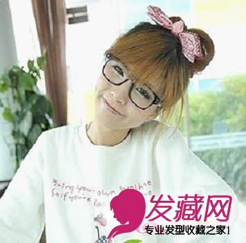 很学生装的发型,很有学院风格,一副黑色大框眼镜带出萌萌的感觉,粉色