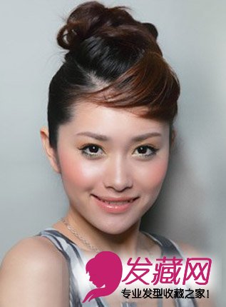 放射状盘起的发髻一直都是盘发中的经典图腾。全部盘起的头发让脸部轮廓显得更加清晰,精神。刘海发量在这款发型中的戏份依然关键,太多的话会抢了发髻的风头,太少则会让整体印象显得老气。利用“大背头”的手法将刘海倒梳,再折返前额,能够很巧妙地中和发量。选择发蜡方面,建议使用哑光类产品,适当的光泽度能够让发型看上去更加光鲜自然。