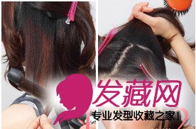 1 保留刘海发片,分取两侧及后侧发片,对发梢部分进行随机的内卷or外卷,打造出S型的发卷效果。