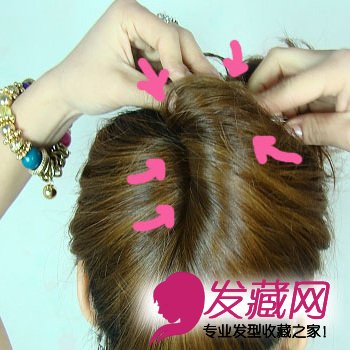 4。用发夹固定住,多夹几个也可以的,记得要藏起发夹哦,箭头的方向是要夹夹子的地方