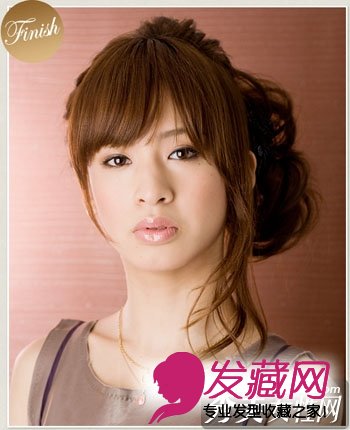盘发 一边倒背后盘发向留出头发一边集中,并且尽量营造凌乱蓬松的效果,配合单侧留长的慵懒性感效果;
