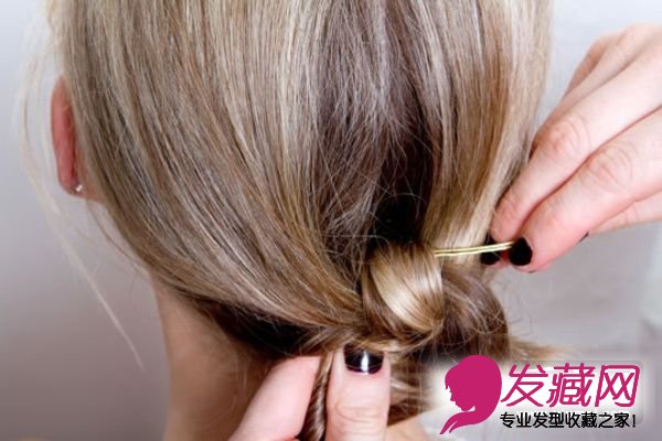 step7下面开始最重要的固定工作,将发卡插入第一个发结和头发之间固定。