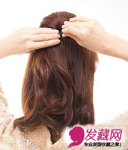 将上半部分的头发梳起,并用卡子固定。