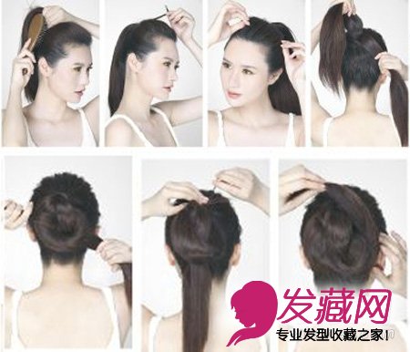 用卡子固定好,藏住发尾。让整个发髻从正面看起来不要太过明显。造型完毕。