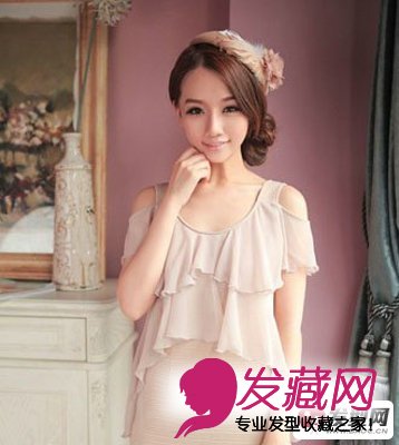 名媛淑女侧盘发发型:长发侧盘起的低扎侧盘发女生发型,分发着淡薄的甘甜气味,充溢淑女情怀的最新盘发发型设想,营建出女生小清爽休闲淑女范,配上露肩性感淑女裙,魔力没有可招架,文雅又小气。