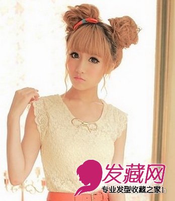 可爱的双丸子头盘发,两束高位的盘发束发让