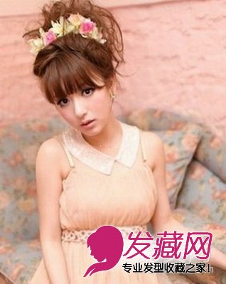 蓬松的发髻打造出韩式盘发发型的别致美丽,微凌乱感的前额碎发平刘海,慵懒地散下,头后部的烫发发丝,同样制造出女生发型的慵懒感,小清新的气质瞬间绽放出来。