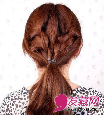 用皮筋把刚刚扎的麻花辫还有剩余的头发一起扎起来