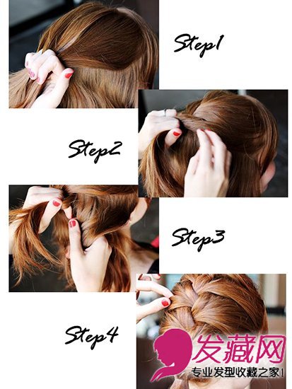 Step1:首先将头发分层,头顶四分之一的发量用手指固定成四股准备编发。