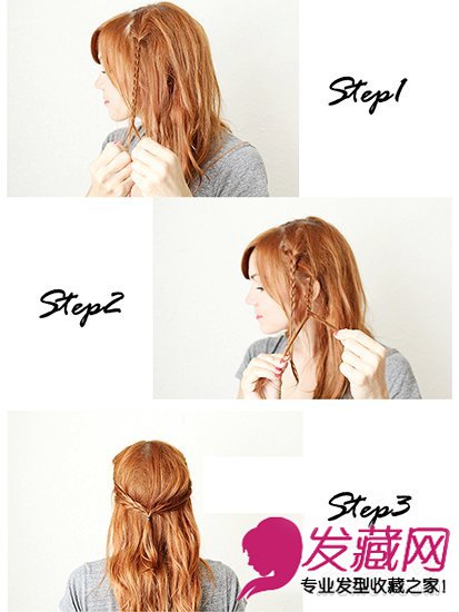 Step1:头发两侧靠近耳朵上方接近发根的部位留出一小撮发量,进行 编发。
