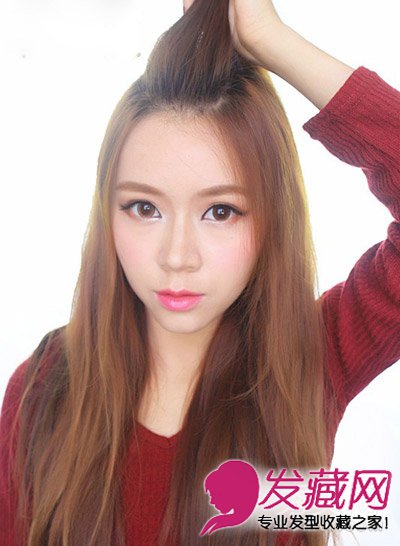 部分的发丝聚拢,收起,就像公主头哪一样,做一个橄榄形状。