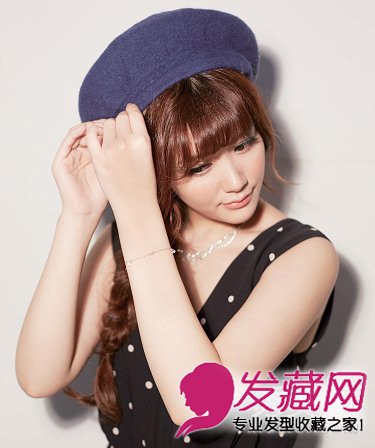 将贝雷帽偏向没有麻花辫的一边佩戴,俏皮又可爱。