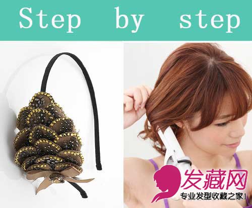 戴上一个发箍,并且用电卷棒把头发弄弯曲蓬松。