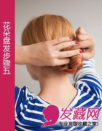花朵盘发步骤五:再将马尾辫扭转成花朵造型。