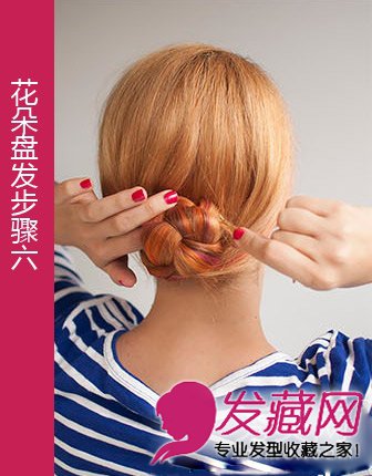 花朵盘发步骤六:再用发夹一一固定。这款盘发就搞定了。