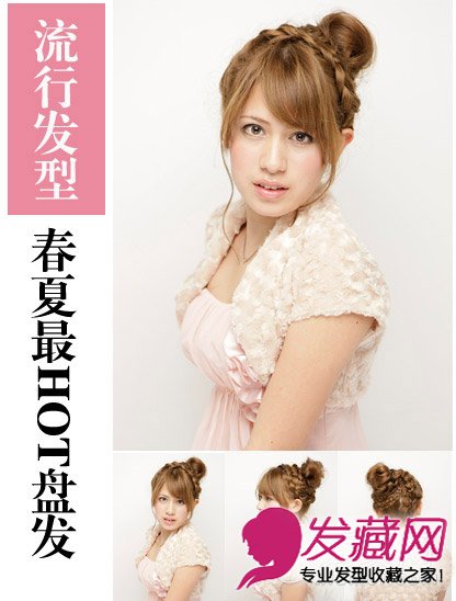 发型点评:这款盘发发型运用辫子打造出饱满的盘发效果,高耸的花苞头活力指数一百分。春夏扎上这样的发型,出游约会都是相当不错。