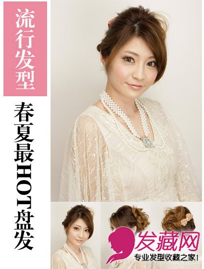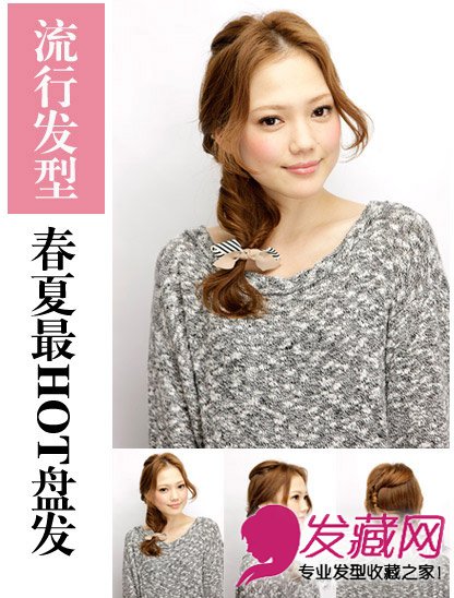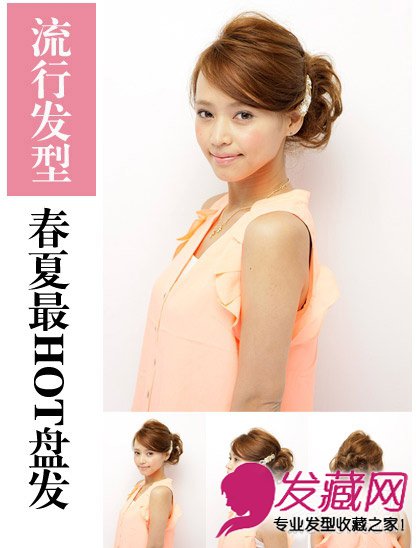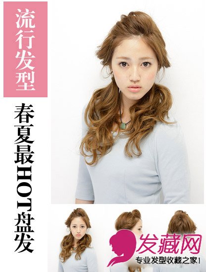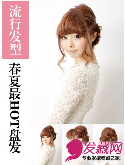 发型点评:侧分斜刘海表现出小女人般的优雅唯美。饱满的侧边盘发如棉花糖般蓬松妩媚。盘起长发让你瞬间清爽蜕变。如果觉得发型单调,点缀一只红色发饰,吸睛指数彪升到满分。