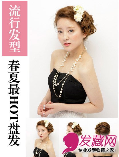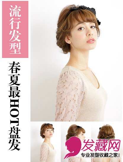 发型点评:发量偏多的MM也可以尝试一下这款盘发,通过盘发设计打造出两层扎发效果,饱满而立体。配上一只黑色发箍,高贵气质感立刻拥有。