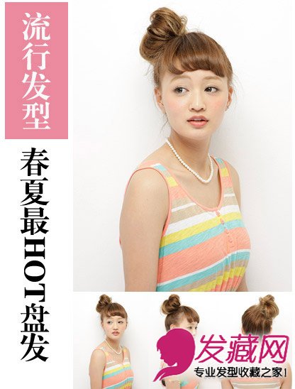 发型点评:丸子头活力十足,最适合天气炎热的春夏季节,高耸的大号丸子头+别致俏皮的内扣刘海,甜美的感觉让人移不开眼眸,而且这款发型的增高效果也是超级不错哦。