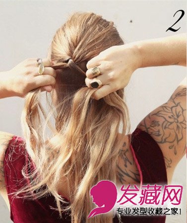 STEP 2 将上面部分的头发在上下分开处分成三股并交错变成普通麻花辫。注意稍微偏向左边进行编发,过程中注意不要编得太乱且偏向左侧。