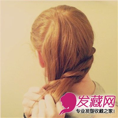 STEP 5 继续绕着脑后曲线编麻花辫,每步完成加入新发束。