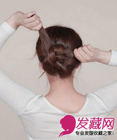 step5:根据发长继续将头发打结,最后用发夹一一固定。