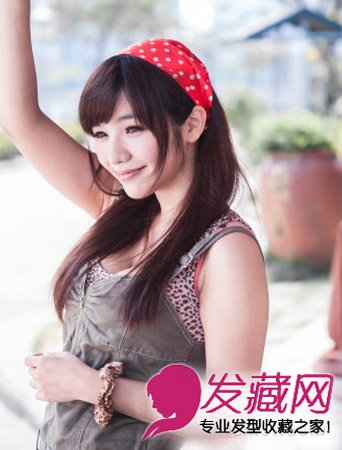 造型,宽宽的红色波点发箍非常靓丽。衬托出女生小巧玲珑的五官。