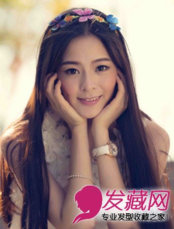 乌黑的中分长直发,配上缤纷的花朵发箍显得清纯娇俏,披肩发型是很凸显女生清纯气质的发型,和适合这个女生。
