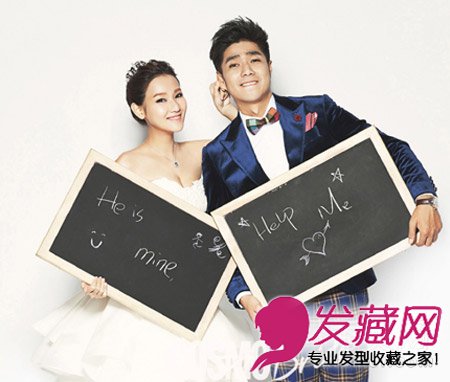 霸气女友拧耳朵的俏皮小动作,举着牌子“他是我的”,受虐新郎“救我”,展现出小夫妻情趣感。