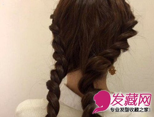 第三步:另一侧的头发也按照同样的步骤扭转成发辫;