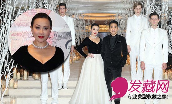 生日宴她以一贯的盘发发型亮相,黑白的高腰礼服,型男护驾,与梁朝伟一起可是派头十足呢。