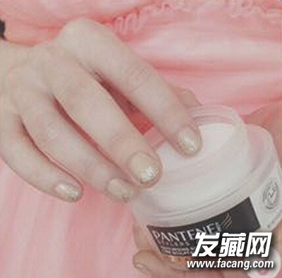 步骤2、用手指蘸取一些发膜涂在头发上;