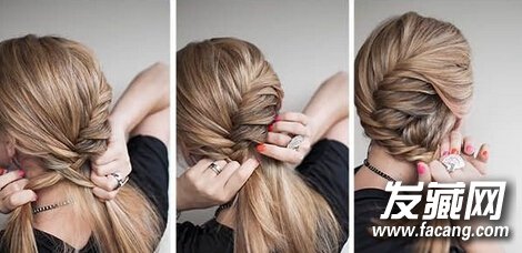 tip6、麻花辫往右侧编,和上面编的麻花形成好看的S形纹路,编的时候也要注意松紧情况,不要弄得一会大一会小哦,否则出来的效果就不好看了;