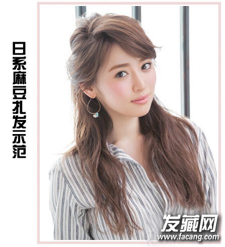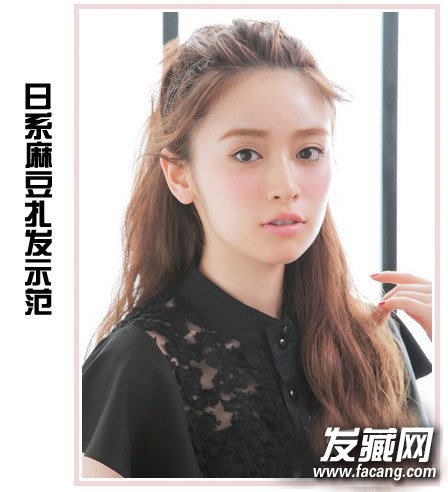 发型点评:如果不喜欢刘海也可以试试这款露额半扎发,用发箍将刘海固定起来,甜美清新。