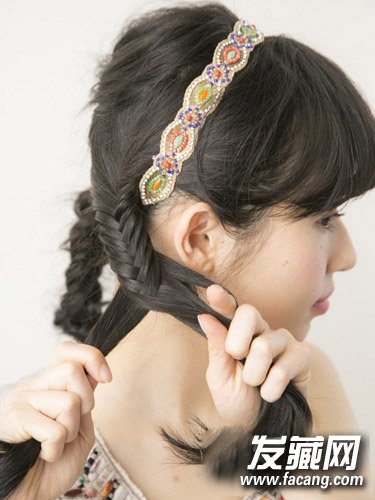 田园风编发盘发教程 蓬松的刘海空气感十足(5)