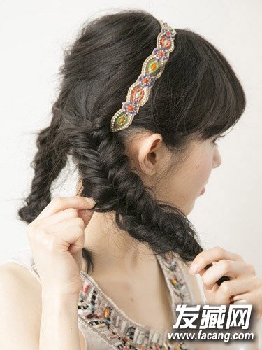 田园风编发盘发教程 蓬松的刘海空气感十足(6)
