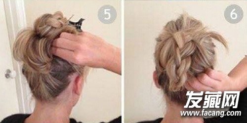 step6、最后将上面编的麻花辫绕着固定的丸子头转一圈,发尾隐藏在里面,用小发夹固定就好了。