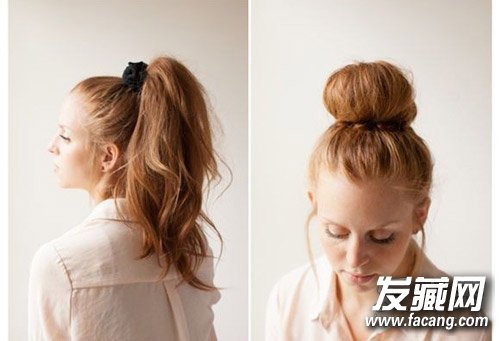 Step3:按照顺时针的方向,将头发旋绕至发圈上,用U形夹固定住发尾。