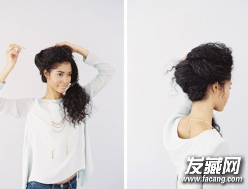 头顶和右耳侧头发盘起后用发夹固定位置,效果如右图。