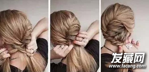 2、在编发过程中不断加入头发,一直编到底,然后在脖子的地方开始编鱼骨辫。