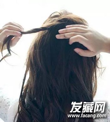 2、分束进行拧转,从头顶部分开始分束拧转。