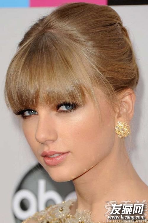 柔软蓬松的刘海让五官立体的霉霉更显优美梦幻,较高的包裹式发髻气质出众,用卷发棒将额前刘海卷过后有了轻盈的空气感,露出深邃的双眸,谁看了会不心动呢?