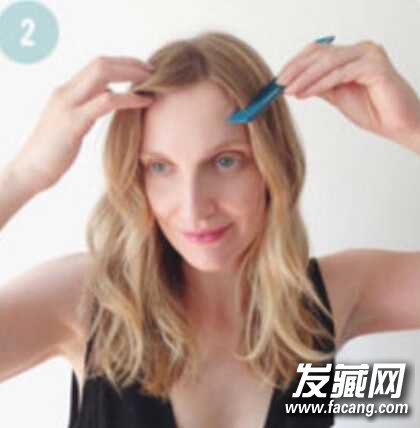 step3、如图,用梳子将头发分为三部分,左侧为一份,右侧为一份,分别固定好备用,中间一份用手拿着备用;