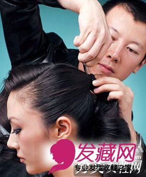 并不是所有发髻都是要把所有头发光滑滑梳向脑后,完全可以将前面一份的头发三七侧分,这样会让脸显得瘦削完美。